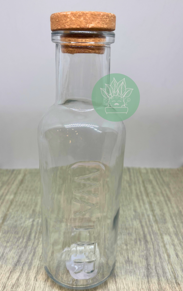 Botella de vidrio transparente "water" con tapón de corcho
