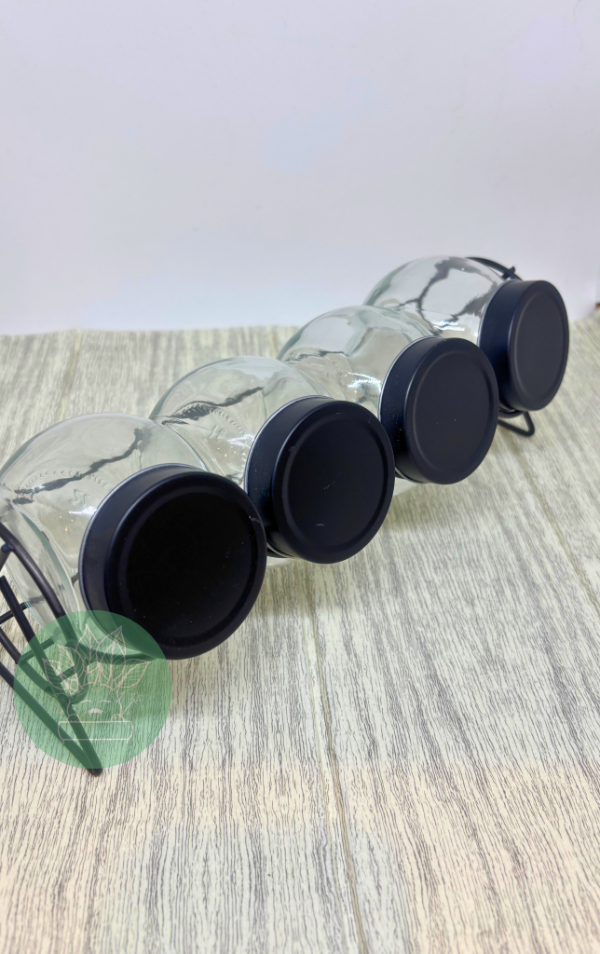 4 especieros de vidrio con soporte de metal