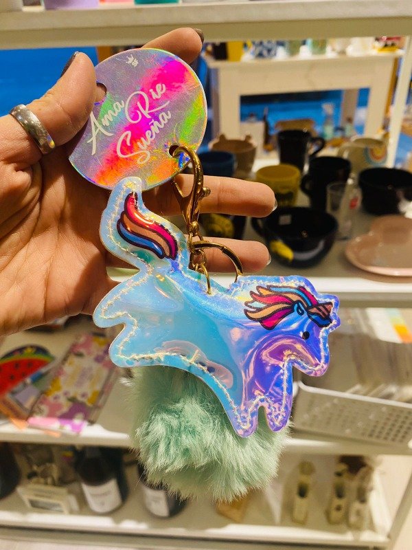 Llavero unicornio con pompom