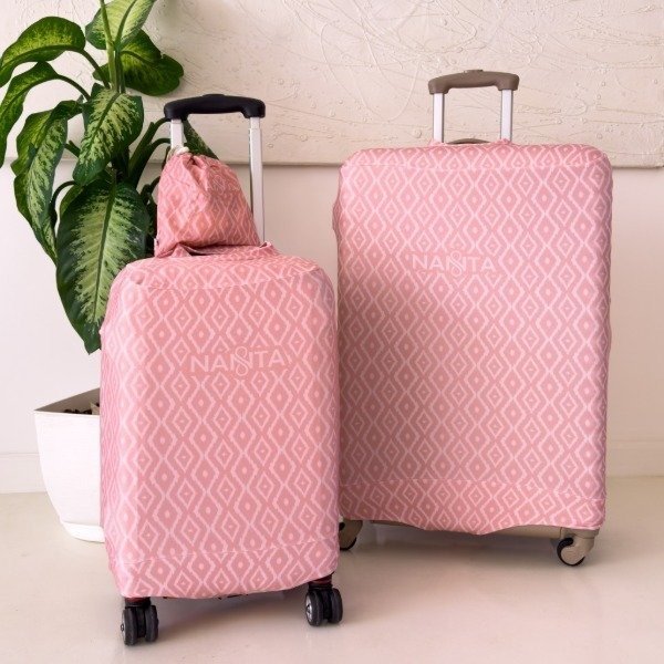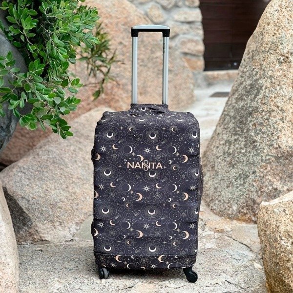 Funda en tela de lycra expandible que protege a la valija de rayones y marcas. Viene con una bolsita que se cierra con una tanca para guardarla cuando no la uses.